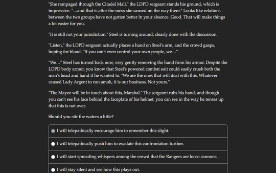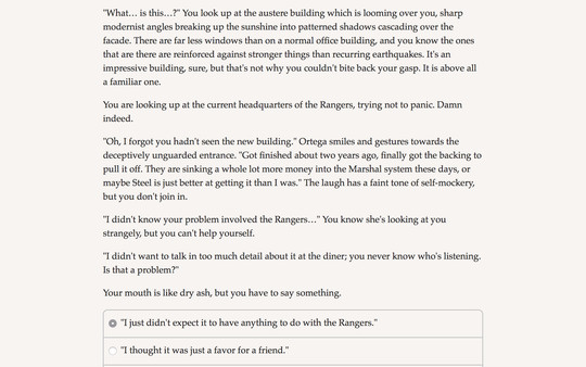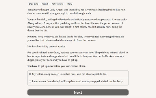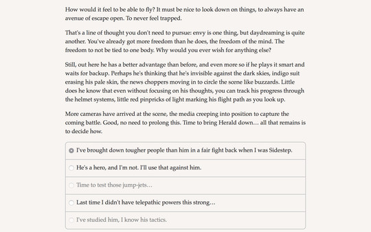 Fallen Hero: Rebirth is a 380,000 word interactive novel by Malin Rydén, where your choices control the story. It's entirely text-based—without graphics or sound effects—and fueled by the vast, unstoppable power of your imagination.